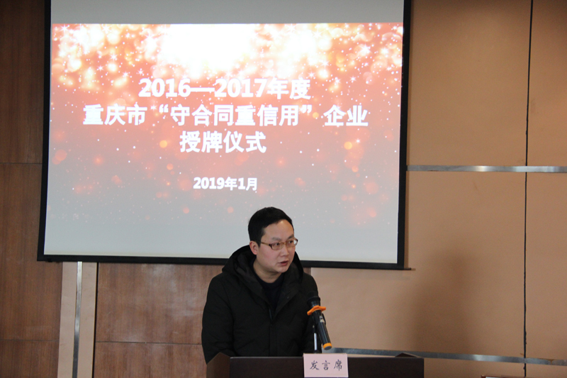 公司總經(jīng)理作為2016-2017年度重慶市“守合同重信用”微型企業(yè)代表上臺發(fā)言。